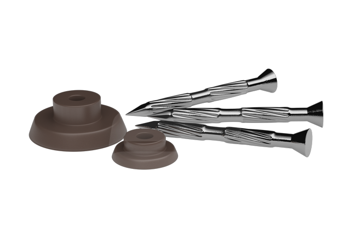Specjalne gwoździe ze stali hartowanej wykorzystywane do montażu folii fundamentowych o wysokości wytłoczeń 8mm. W komplecie posiadają specjalną podkładkę z tworzywa sztucznego która uszczelnia miejsce montażu gwóździa. Gwoździe w komplecie z podkładką tworzą idealny system montażowy dla folii fundamentowej.